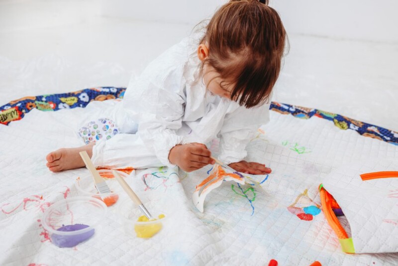 Idealnym uzupełnieniem dla maty 3w1 jest Fartuszek dla dzieci do malowania.