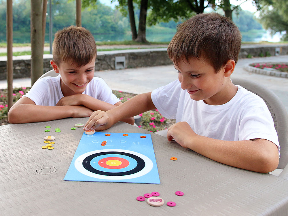 – 20 drewnianych „strzałek” (mini dysków) w różnych kolorach