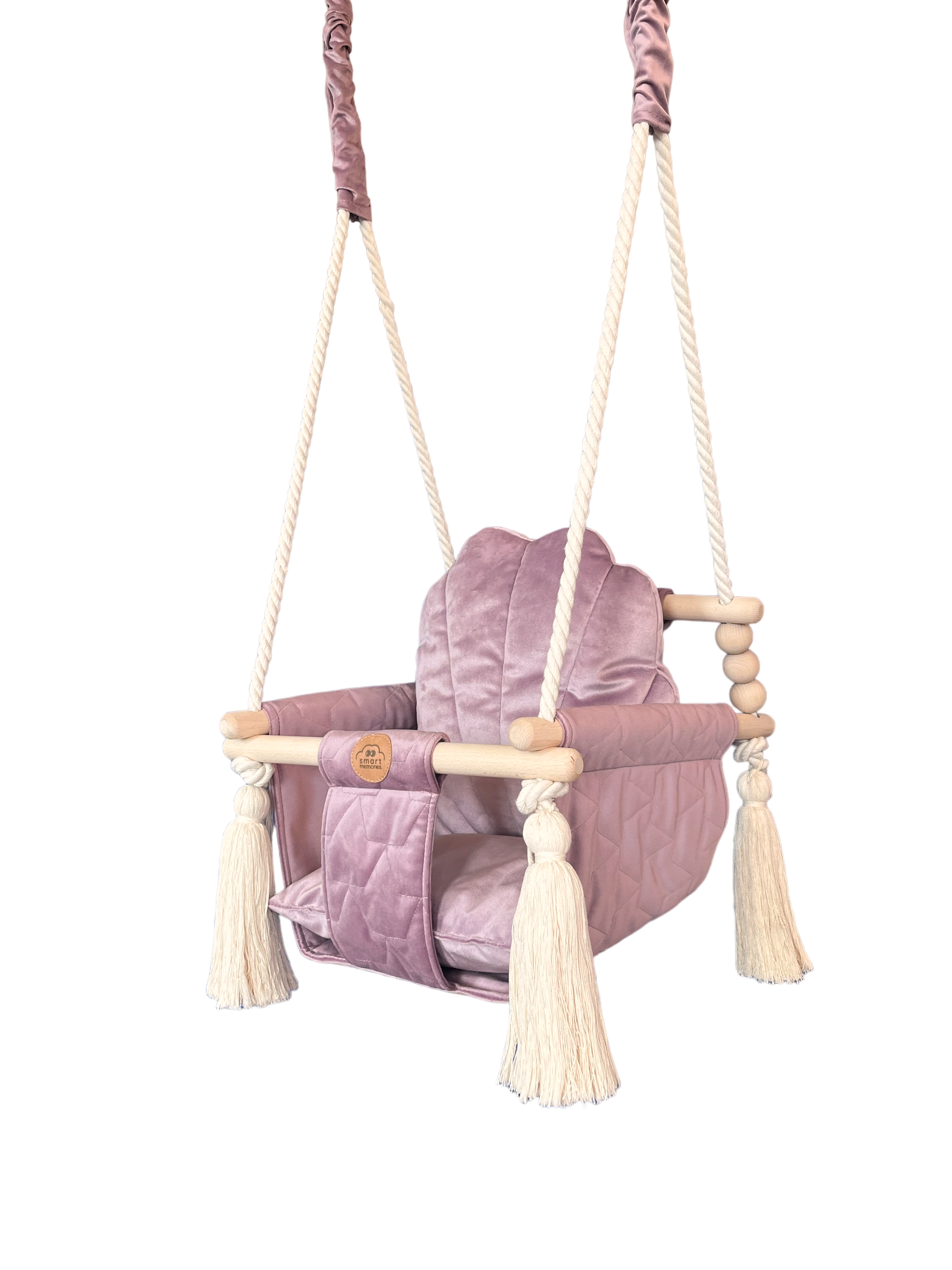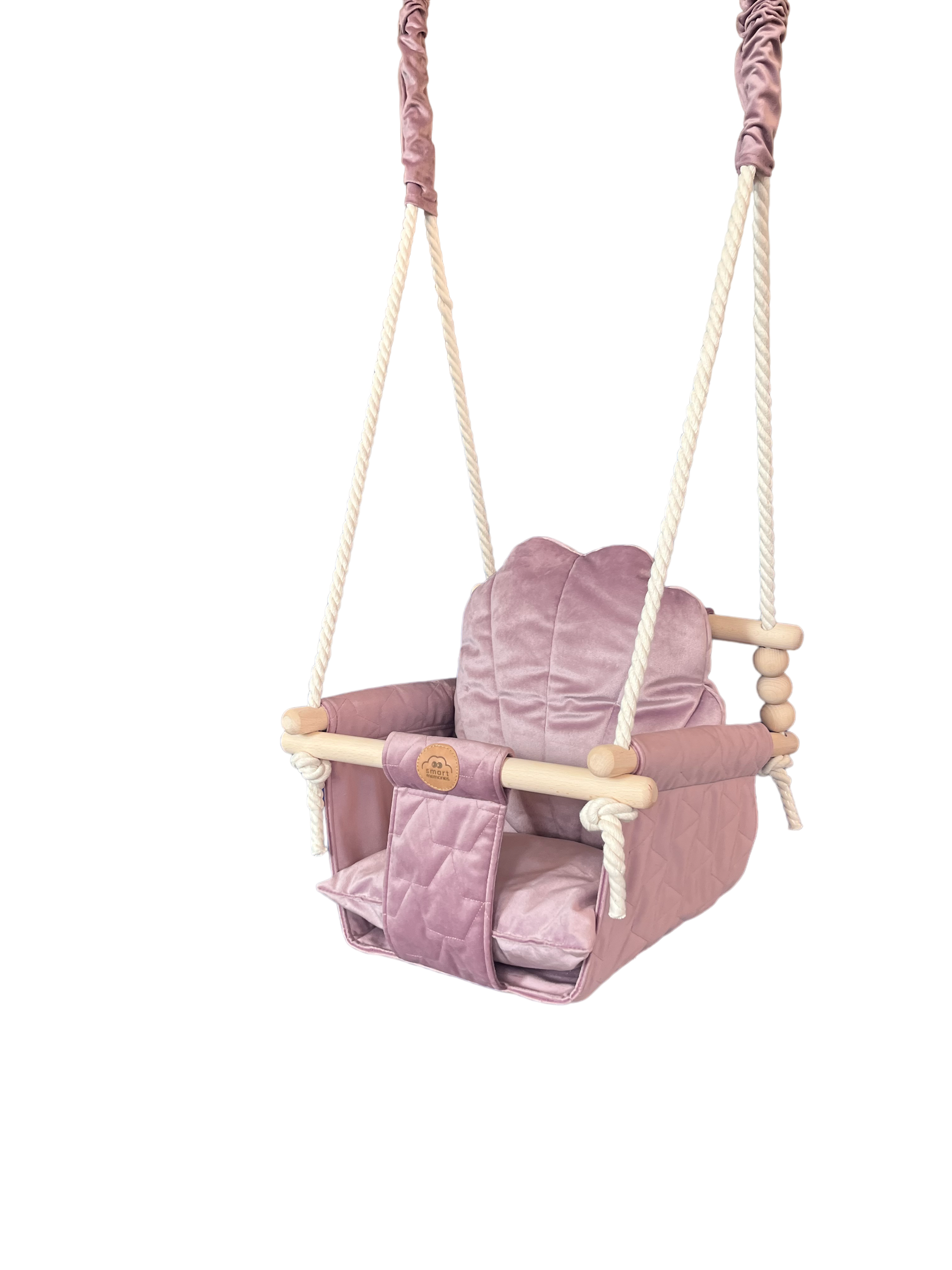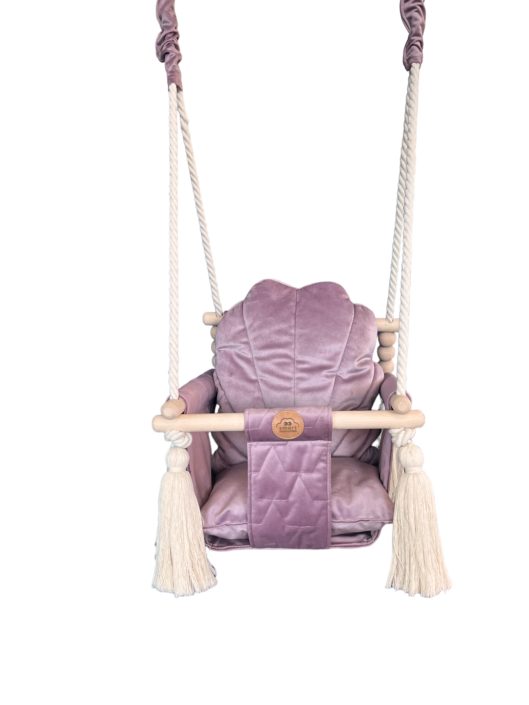 Klasyczną huśtawka z miękką poduszką stylizowaną na muszelkę, idealna dla małych miłośników bujania.