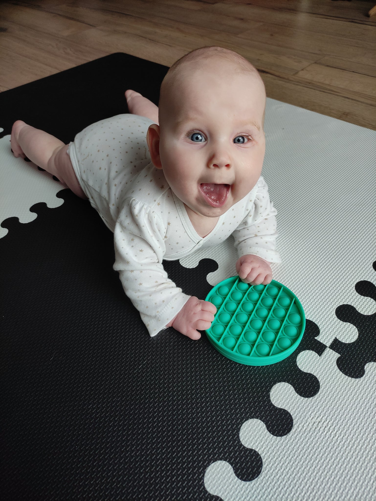 Mata idealnie sprawdzi się u maluszków, które jeszcze nie chodzą i powinny ćwiczyć mięśnie całego ciała leżąc na podłodze pod opieką rodzica.