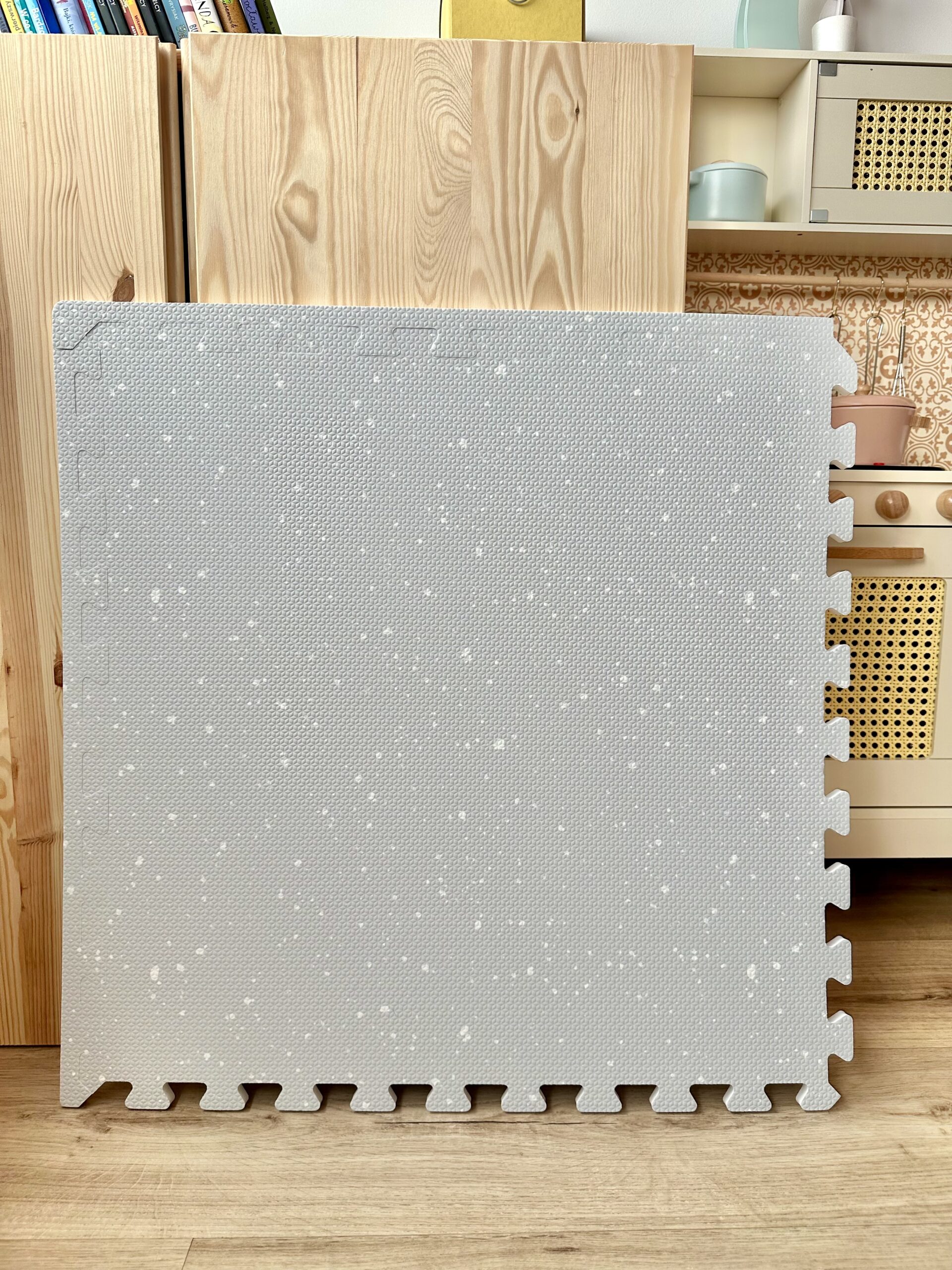Oferujemy matę piankową w kolorze szarym inspirowanym gołębimi piórami z delikatnymi kropeczkami, które przypominają atrament. To idealne połączenie naturalnego spokoju i bezpieczeństwa dla Twojego maluszka.