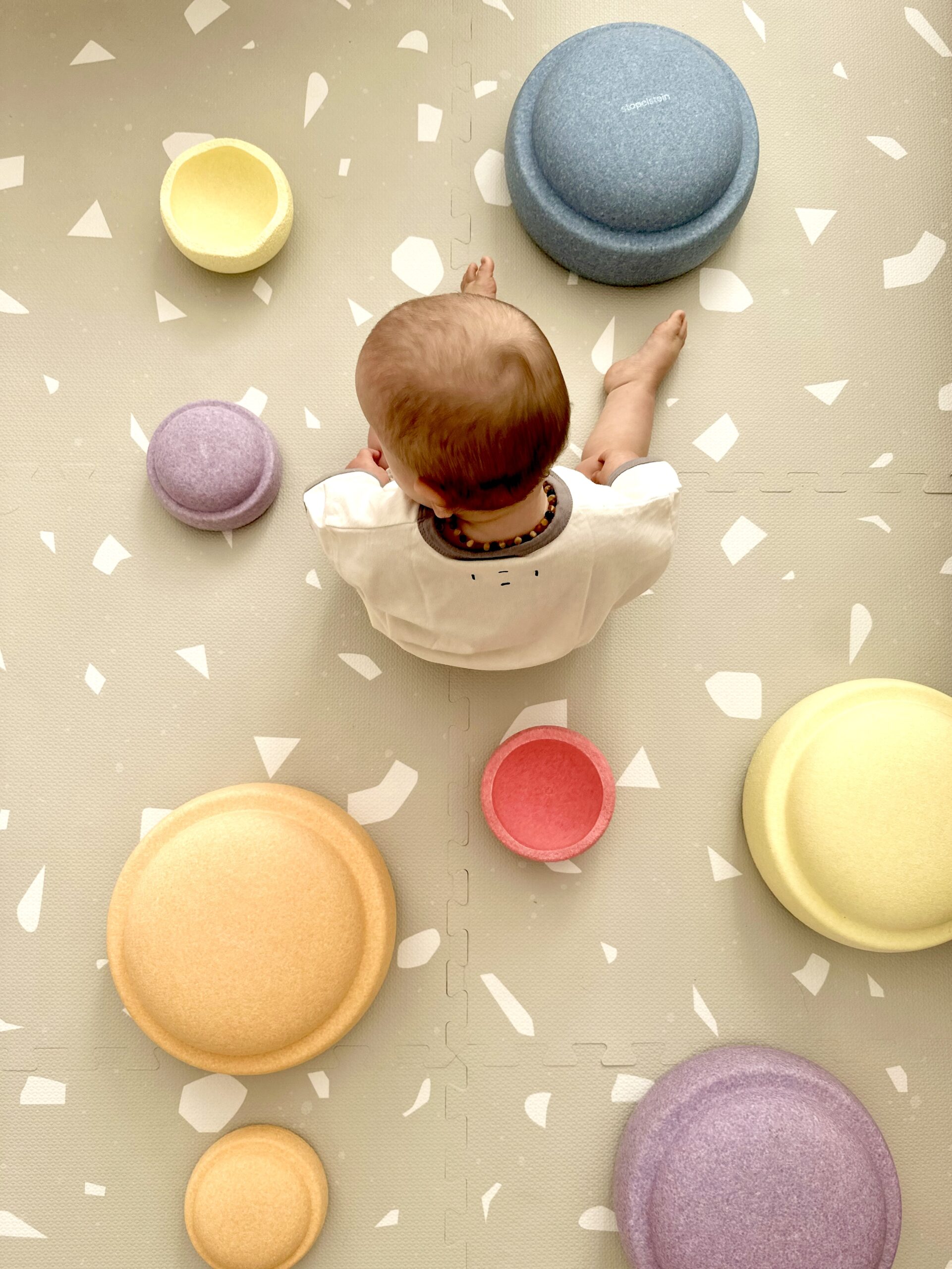 Mata idealnie sprawdzi się dla niemowląt podczas pierwszych aktywności jak leżenie na brzuszku, pełzanie, turlanie czy też raczkowanie.Dodatkowym atutem jest możliwość łatwego dostosowania rozmiaru maty do indywidualnych potrzeb – czy ma ona pełnić funkcję dywanu w salonie czy pokrywać cały pokój zabaw dziecka. Unikalny design mat OLYA KIDS utrzymany w minimalistycznym stylu doskonale wpasuje się w charakter Twojego wnętrza, będąc jednocześnie doskonałym tłem do fotografowania pierwszych chwil Twojego maluszka.