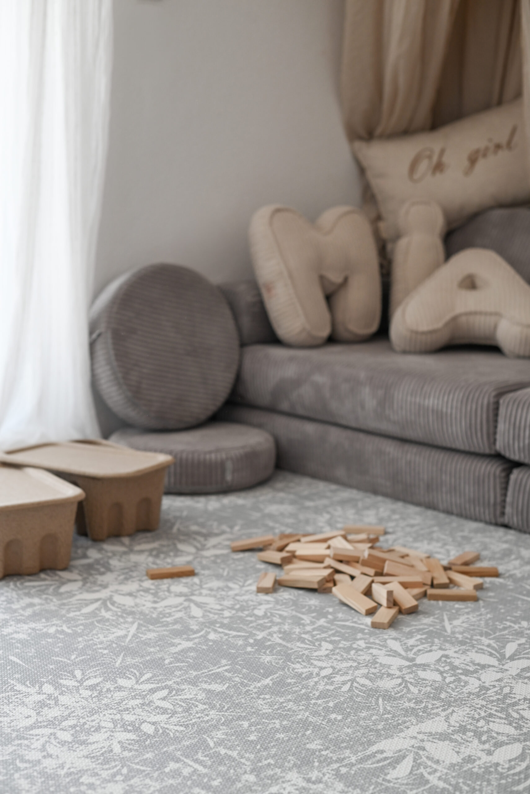 Mata idealnie sprawdzi się dla niemowląt podczas pierwszych aktywności jak leżenie na brzuszku, pełzanie, turlanie czy też raczkowanie.Dodatkowym atutem jest możliwość łatwego dostosowania rozmiaru maty do indywidualnych potrzeb – czy ma ona pełnić funkcję dywanu w salonie czy pokrywać cały pokój zabaw dziecka. Unikalny design mat OLYA KIDS utrzymany w minimalistycznym stylu doskonale wpasuje się w charakter Twojego wnętrza, będąc jednocześnie doskonałym tłem do fotografowania pierwszych chwil Twojego maluszka.