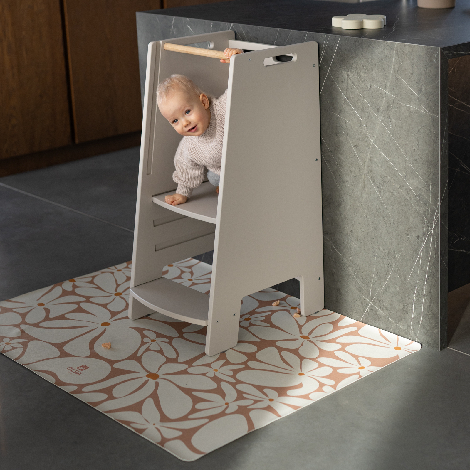 Niesamowicie estetyczna mata ochronna OLYA KIDS pomoże w utrzymaniu porządku i zabezpieczy wszelkie powierzchnie podczas „brudnych” zabaw.