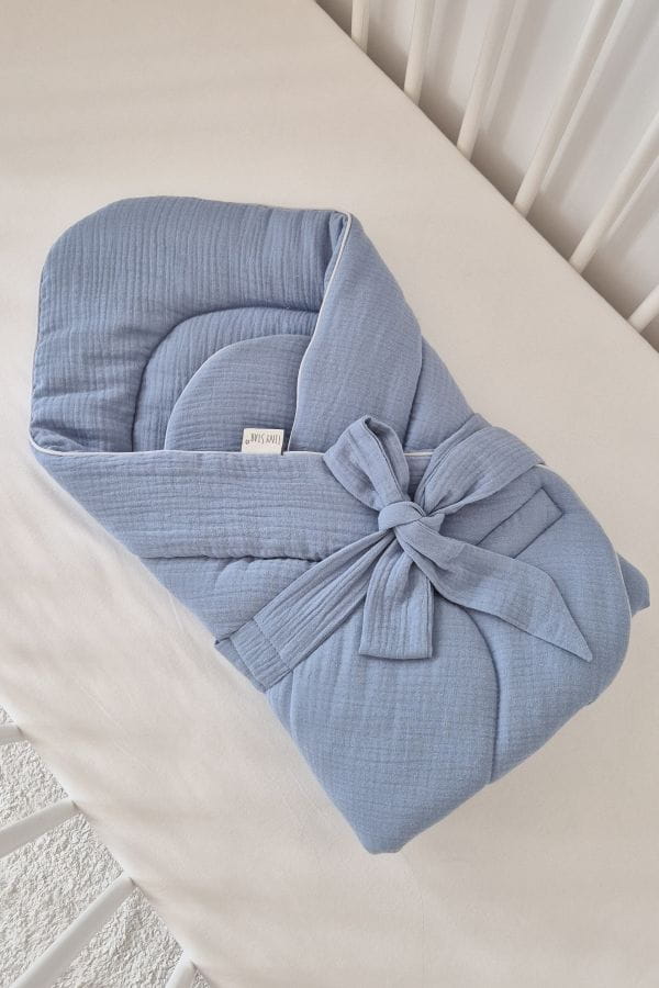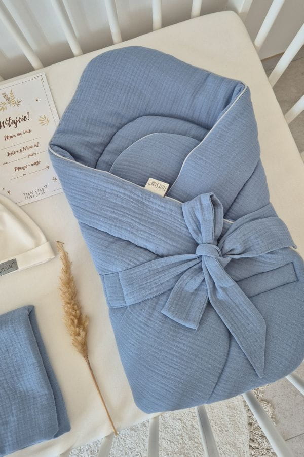 Rożek Tiny Star Blue pełni funkcję mięciutkiego kocyka i ciepłego okrycia niezbędnego do opatulania maleństwa od pierwszych chwil życia, jeszcze w szpitalu.