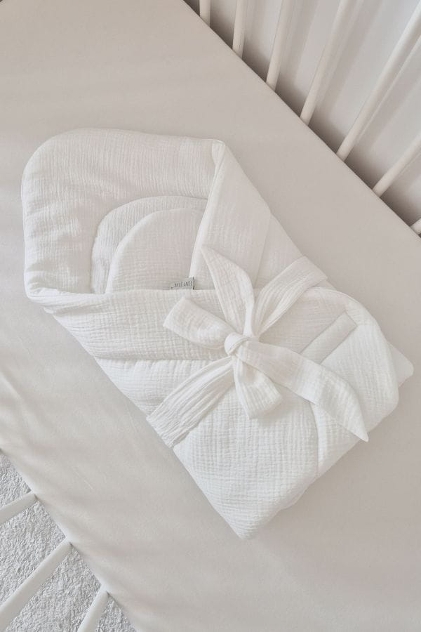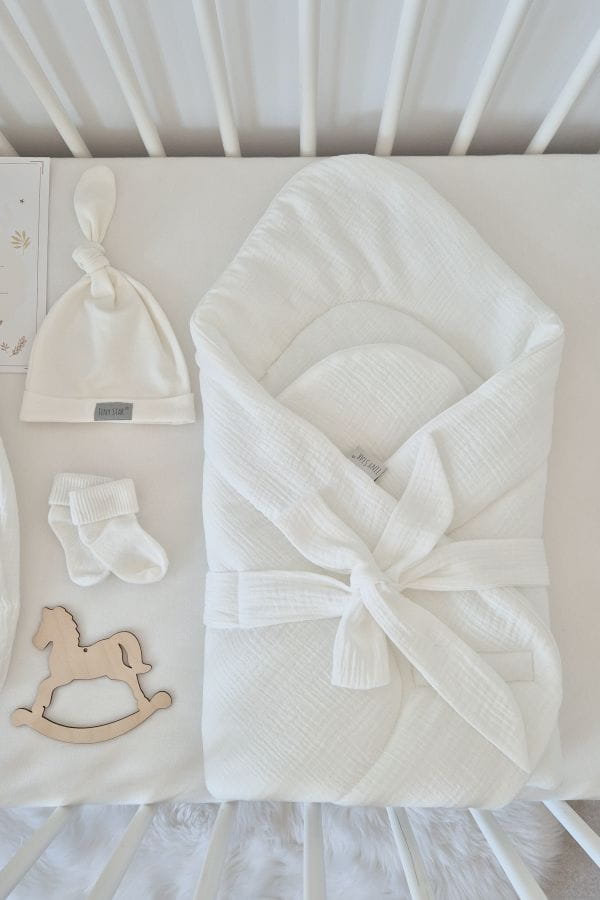 Rożek Tiny Star Creme pełni funkcję mięciutkiego kocyka i ciepłego okrycia niezbędnego do opatulania maleństwa od pierwszych chwil życia, jeszcze w szpitalu.