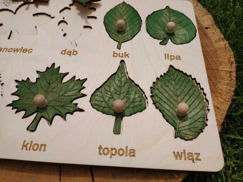 Układanka drewniana z uchwytami do nauki liści i drzew